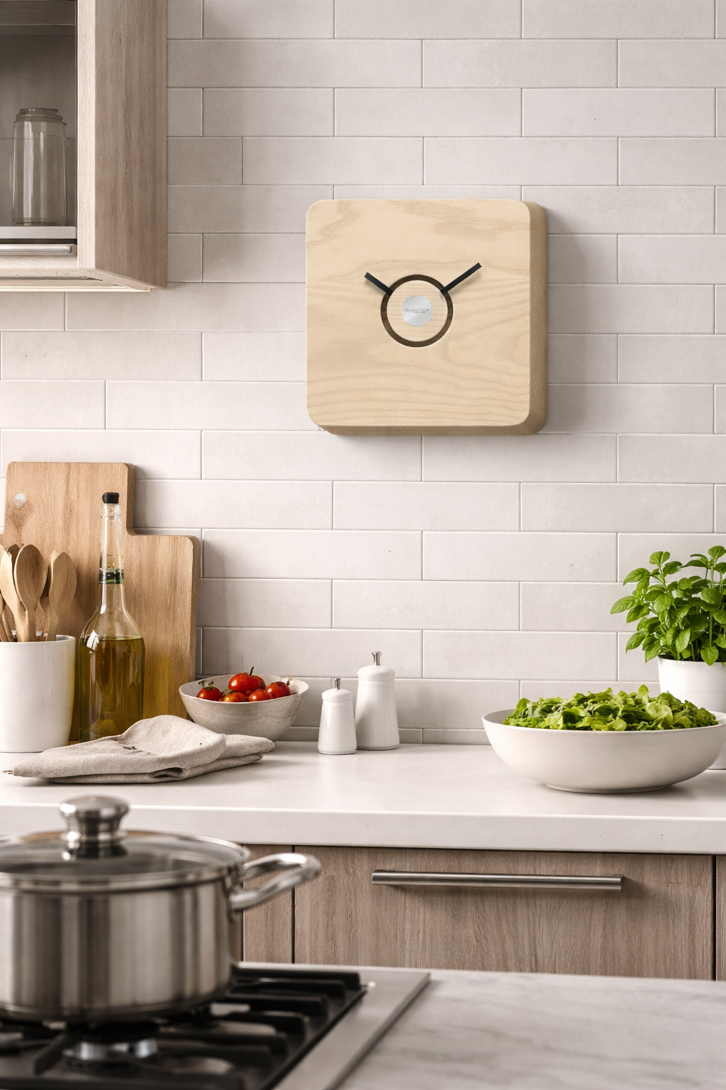 L’orologio da parete Trattoria di Casa Bugatti è un complemento d’arredo pensato per valorizzare gli ambienti domestici con uno stile elegante, caldo e contemporaneo. Realizzato in legno di frassino massello tabacco, questo orologio unisce la naturale bellezza del legno a un design minimale e raffinato, capace di adattarsi perfettamente a diversi stili di arredamento, dalla cucina al soggiorno.