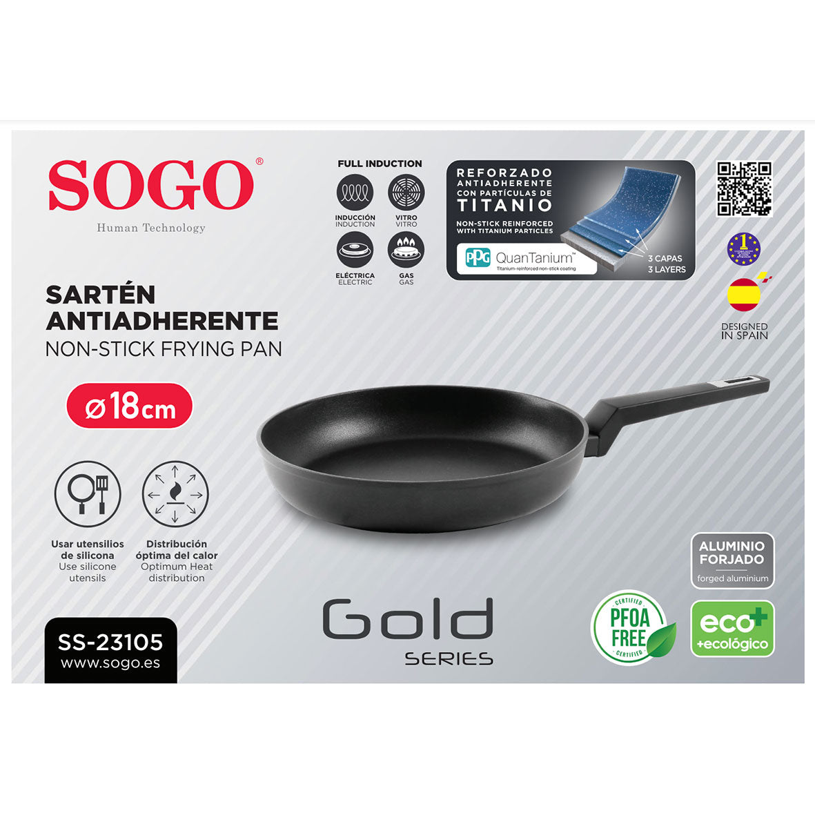 SOGO - SAR-SS-23105 - Padella antiaderente 18 cm - 3 strati di alluminio - Anche per piani a induzione.