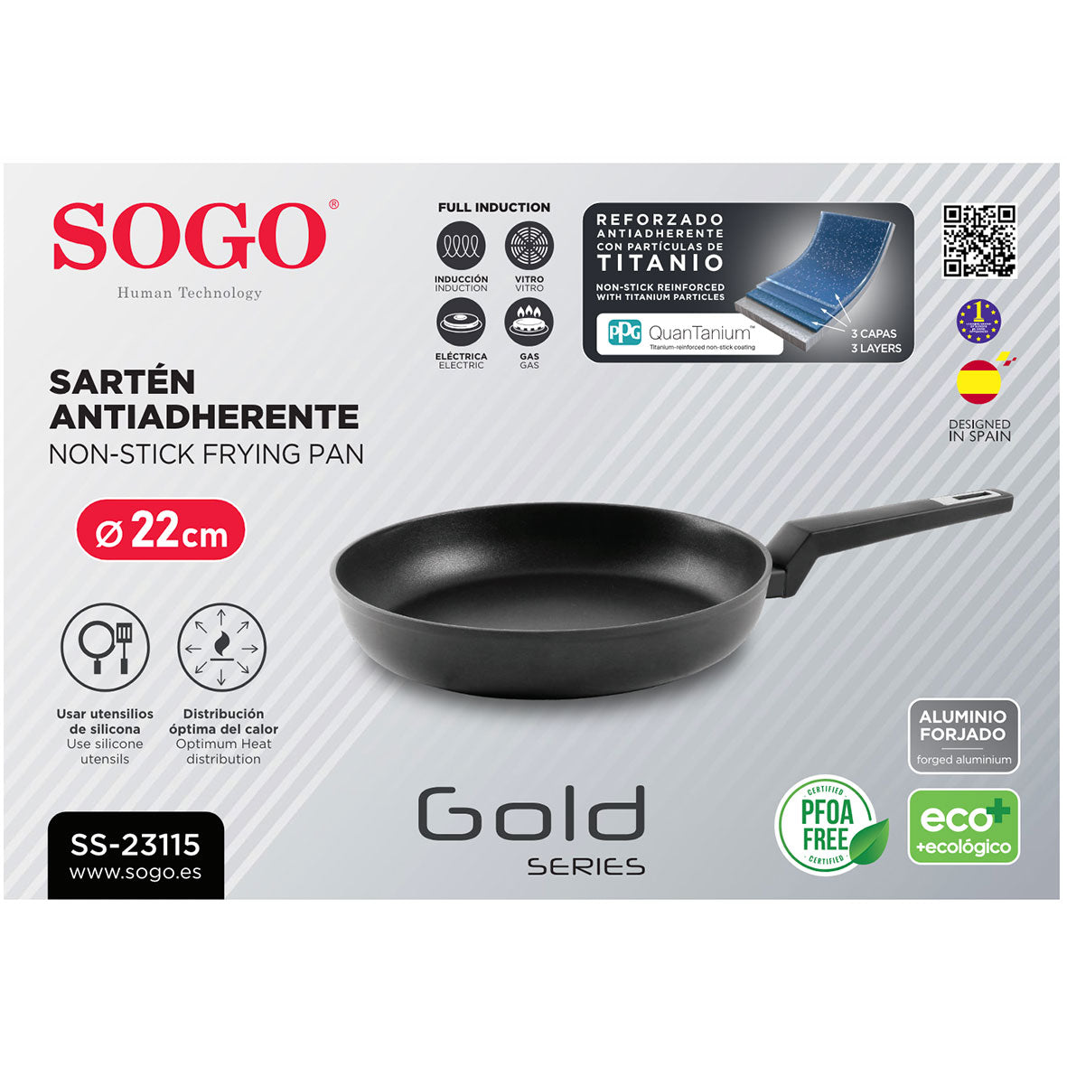 Sogo - SAR-SS-23115 - Padella antiaderente in alluminio - 22 cm - Anche per piani ad Induzione